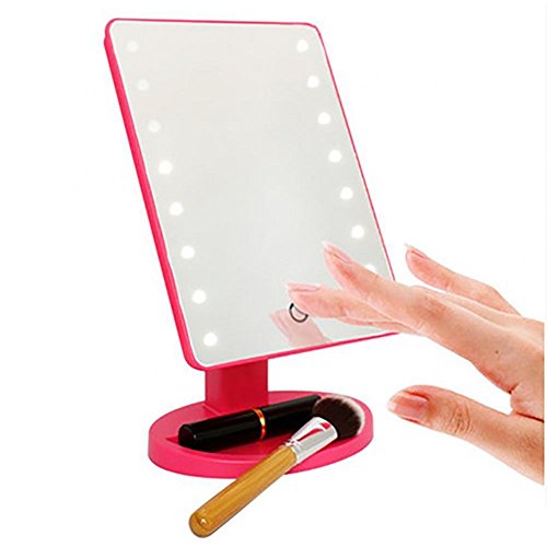 TUZECH 20 Led Dimmable 360 Rotation Touch Panel Make Up Mirror With Removable Magnified Mirror (Dark Pink)