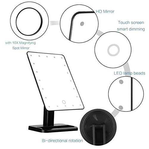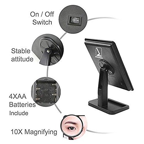 MIRROR, MIRROR ON THE WALL - Find your perfect viewing angle using the Absolutely Lush Lighted Makeup Mirror's 180° swivel rotation, making it easier to check your makeup or hair from any view! See the finer details using the Detachable 10X Magnification Spot Mirror featuring rear-mounted suction cups for your convenience.