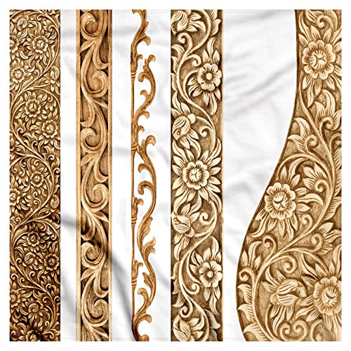 (Ambesonne)/Accessories/Cold Weather Accessories/DIRECT FROM USA/Earth Tones Bandana by Ambesonne, Artistic Carpentry Themed Vertical Borders with Flower Motifs...