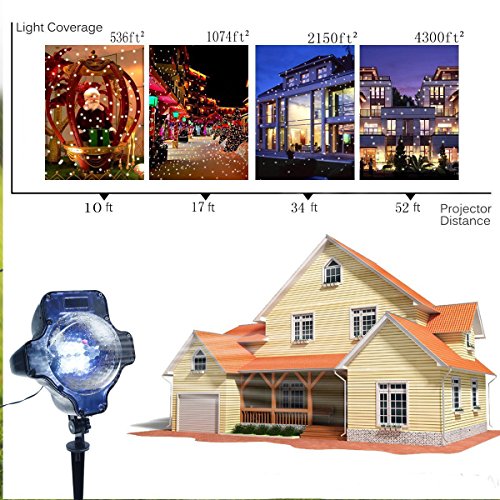 - LARGER PROJECT AREA -- Compared with old version snow light,this rotating snow falling light projects larger coverage area (15-50㎡/ 18-60 sq.yd) at the same spot distance (3-6 m/ 9.8-19.7 ft). You are able to decorate the whole house with only one light, saving more space and money