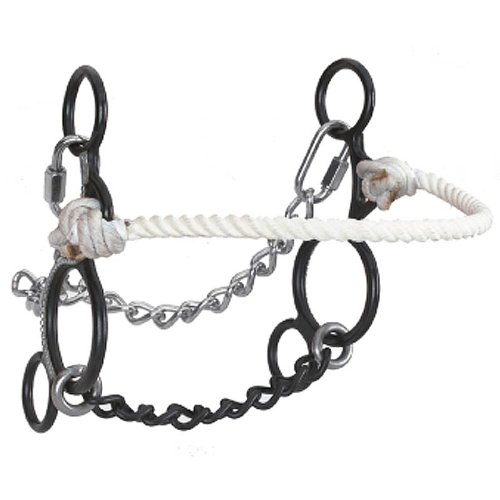 Studio : Circle Y Publisher : Circle Y Binding : Misc. Product Description New from Martha Josey and Circle Y: Chain mouthpiece with moderate gag action with rope noseband; great to start a young horse and super for competition; blued steel 6 1/4" cheeks with German silver dots 5" chain mouthpiece 0