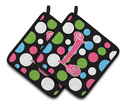 Caroline's Treasures CJ1038-LPTHD Monogram Initial L Polka Dots and Pink Pot Holders (1 Pair), 7.5" x 7.5", Multicolor