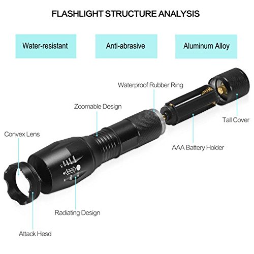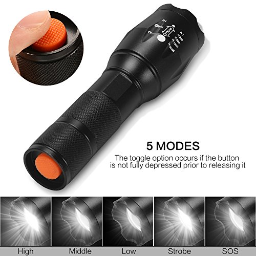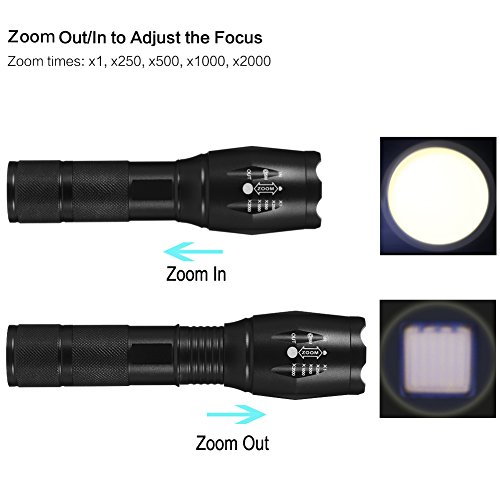 ★Durable LED Flashlight: High-Powered, High quality durable CREE XML T6 LED chip delivers maximum brightness of 1000 lumens (Brightest); Lighting Distances Range up to 650 - 1650 ft; Extensive Lifetime for LED Bulb (Approximately 100,000 Hours).