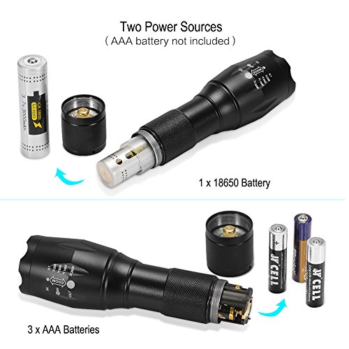 ★Power Source: 1 x 3.7V 18650 Battery(Included 2pcs to replace)or 3 x AAA battery (Not Included);