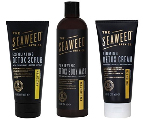 The Seaweed Bath Co. Enlighten (Lemongrass) Detox 3 Product Bundle: Exfoliating Scrub, Body Wash, Firming Cream