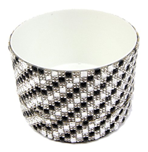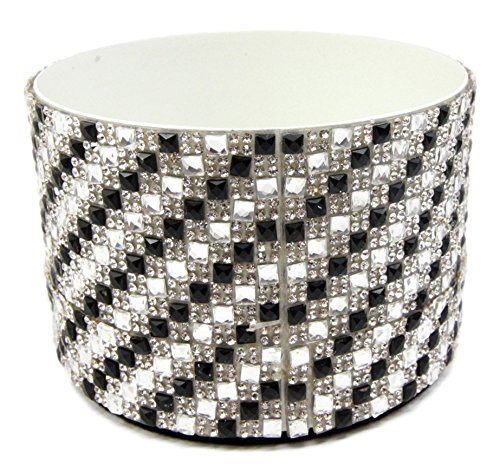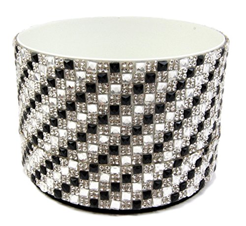 This wine coaster is made of recycled metal with beautiful crystals wrapped around it. It is designed to look like a black and white checker board but adorned with beautiful shiny crystals of different sizes.