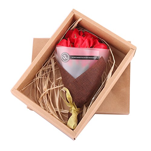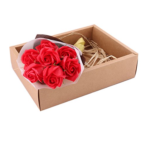 uxcell Birthday Gift Artificial Rose Floral Wash Bathing Soap Flower Bouquet 7pcs Red