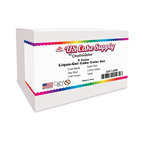 6 Color Cake Food Coloring Liqua-Gel Decorating Baking Primary Colors Set - U.S. Cake Supply .75 fl. Oz. (20ml) Bottles Primary Popular Colors