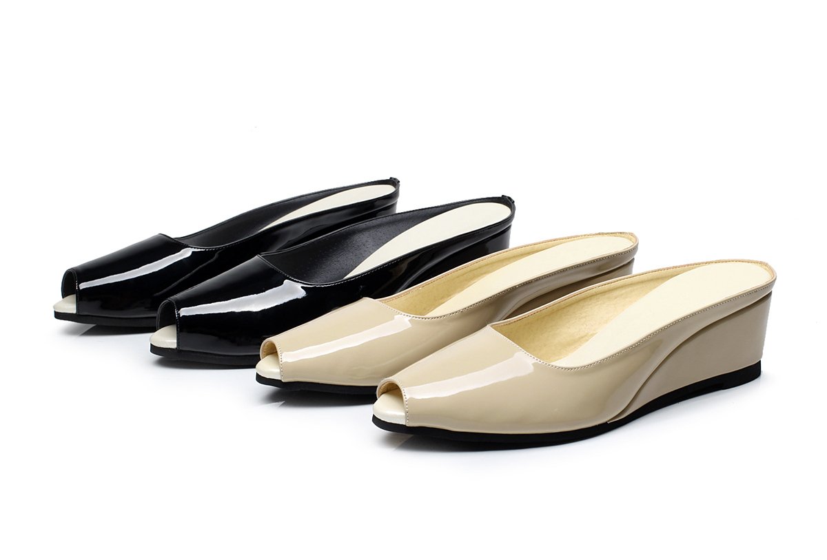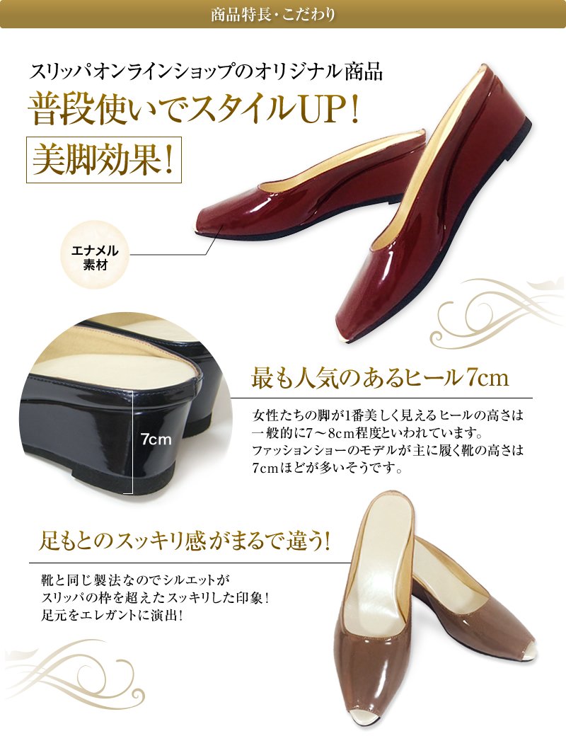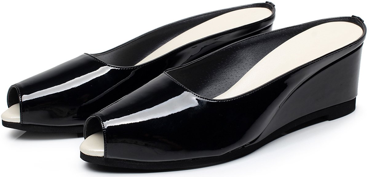 [With storage bag enamel high-heeled slippers 7cm (L Black)