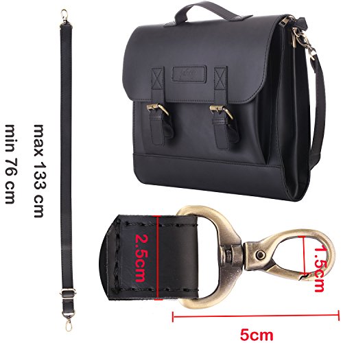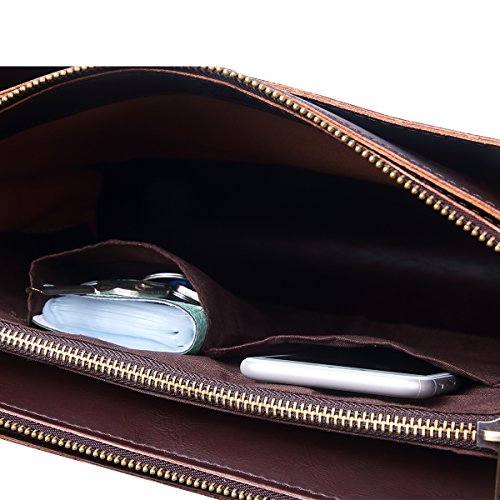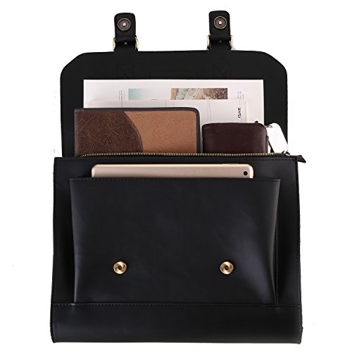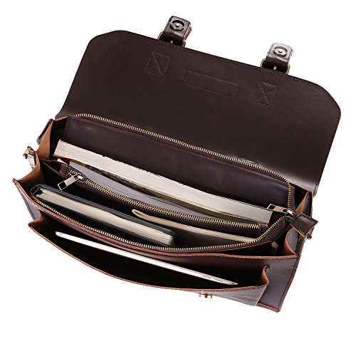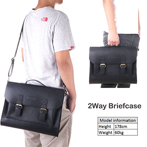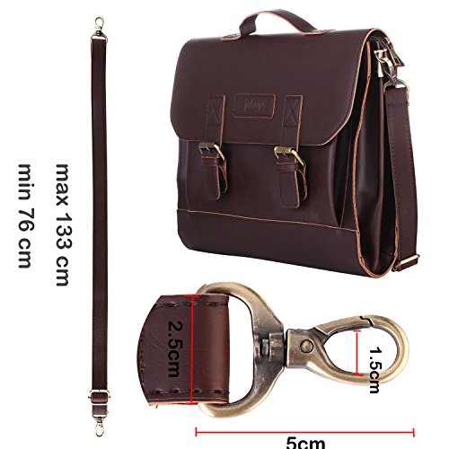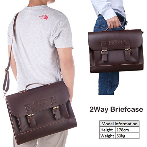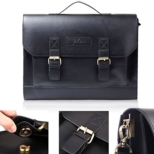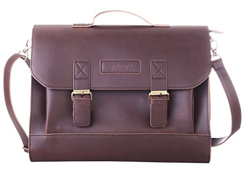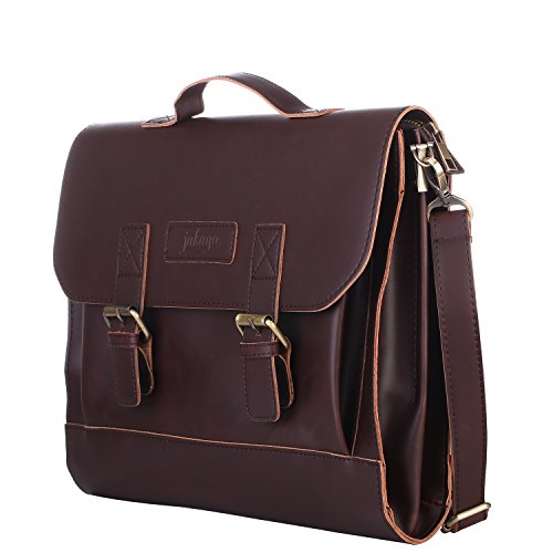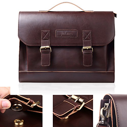 Do you want to a fashion and practical vintage briefcase ? JAKAGO high grade PU leather briefcase messenger bag can meets your needs. Dimensions: bag:14.6 inch x 10.8 inch x 3.15 inch front utility pockets: 12.2 inch x 7.28 inch strap Max length: 50.4 inch Material: high grade PU leather, not normal leather Weight: 844g Multi pockets total 6 pockets: 2 x main pockets, 1 x zipper pocket, inside 1 x open pockets , on the front 1 x large pocket Fits for 11 Inch 12 Inch 13 Inch 13.3 inch laptop or a tablet up to 10-inch, 13-inch Mac Book Pro, A4 books, Ipad, kindle Fire, wallet, keys, cell phone, Powerbank, umbrella, document and most necessary accessories or digital devices Adjustable and removable shoulder strap and the leather handle Adjustable and removable shoulder strap, you can according to your height and comforts to adjust , the handle is leather, very comfortable to your hand Practical Uses A wonderful and practical gift or present to your friends, family, also a multi function bag, can be as laptop/ computer bag, shoulder bag, messenger bag, school bag, briefcase or satchel bag, ideal for shopping ,working, business , travel , vacation or daily use Warm Tips 1.Due to the nature of the material features,there may be a bit smell when you open the package. Please put the bag in a ventilate place. the leather smell will also fade away with the regular use. 2. the material is hard leather, not soft leather. 3. The right way to open this bag is use the magnetic button to open the bag instead of buckle 4. Product Image 100% In-Kind Shooting, Because of the ambient light or production batches, it's normal to have a slightly different color. Package Included 1x retro leather briefcase