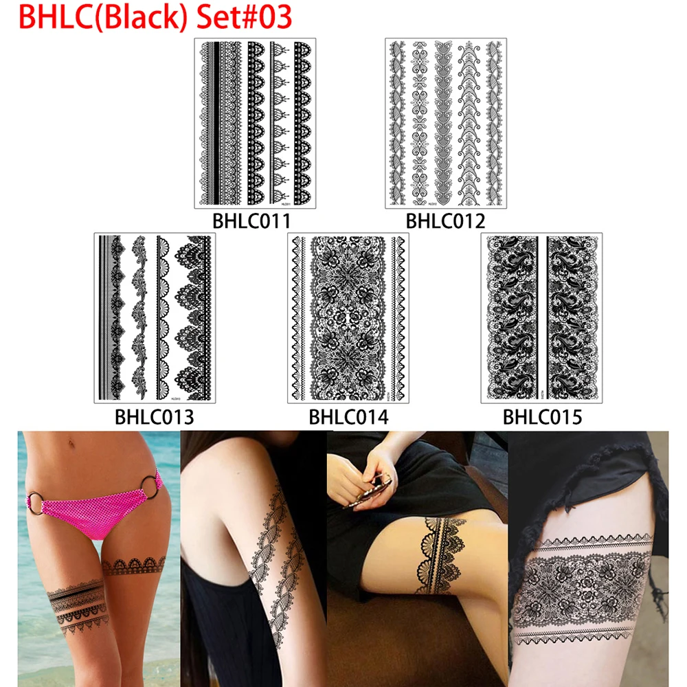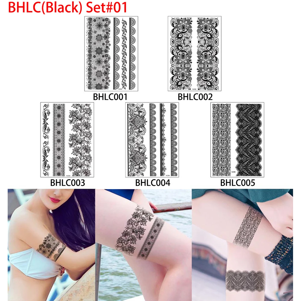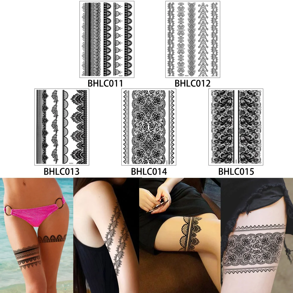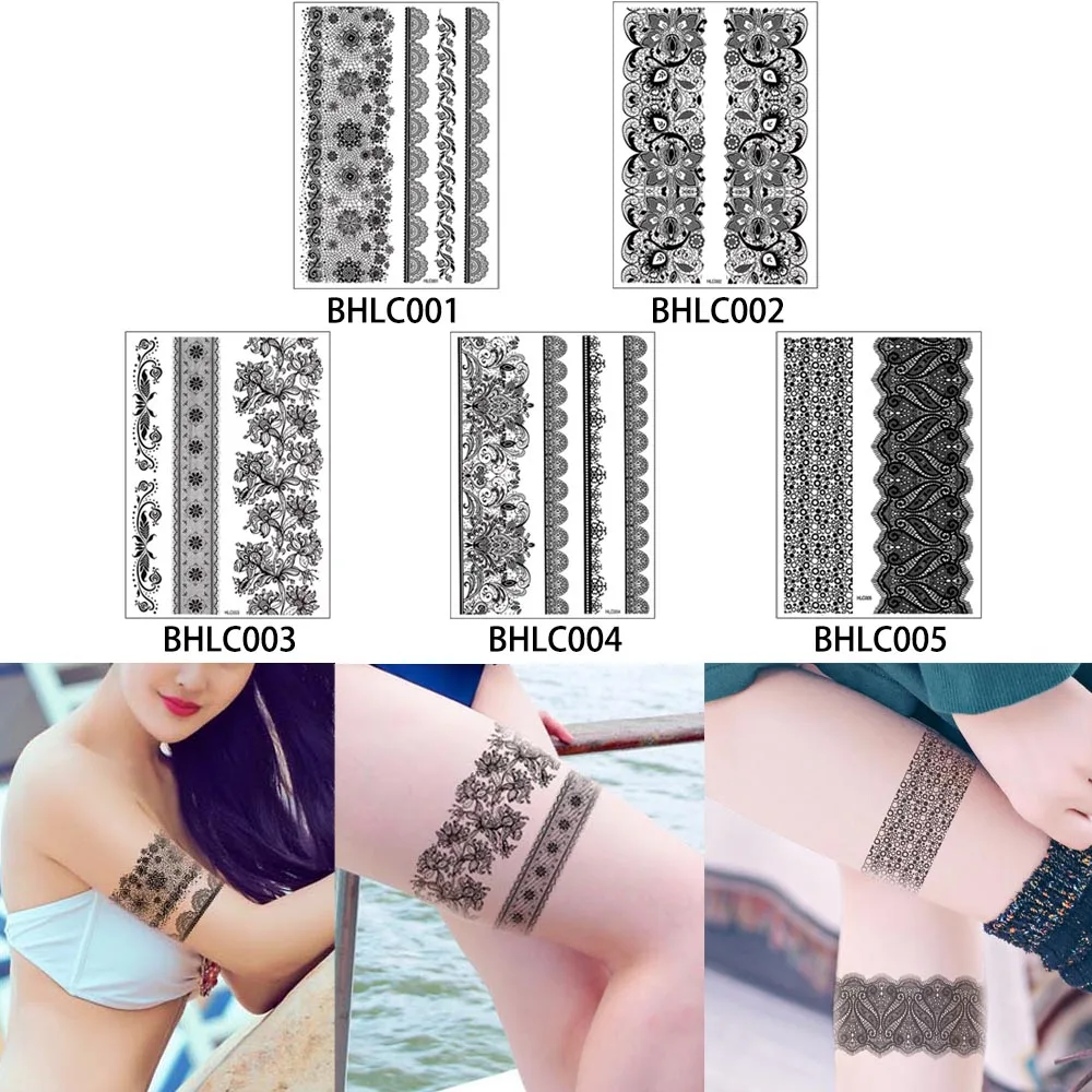 Tattoo Sticker Style:Black Flower Lace Temporary Waterproof Beauty Body Art Tattoo Sticker