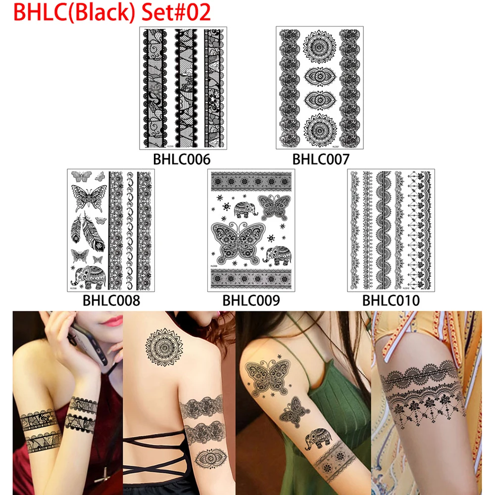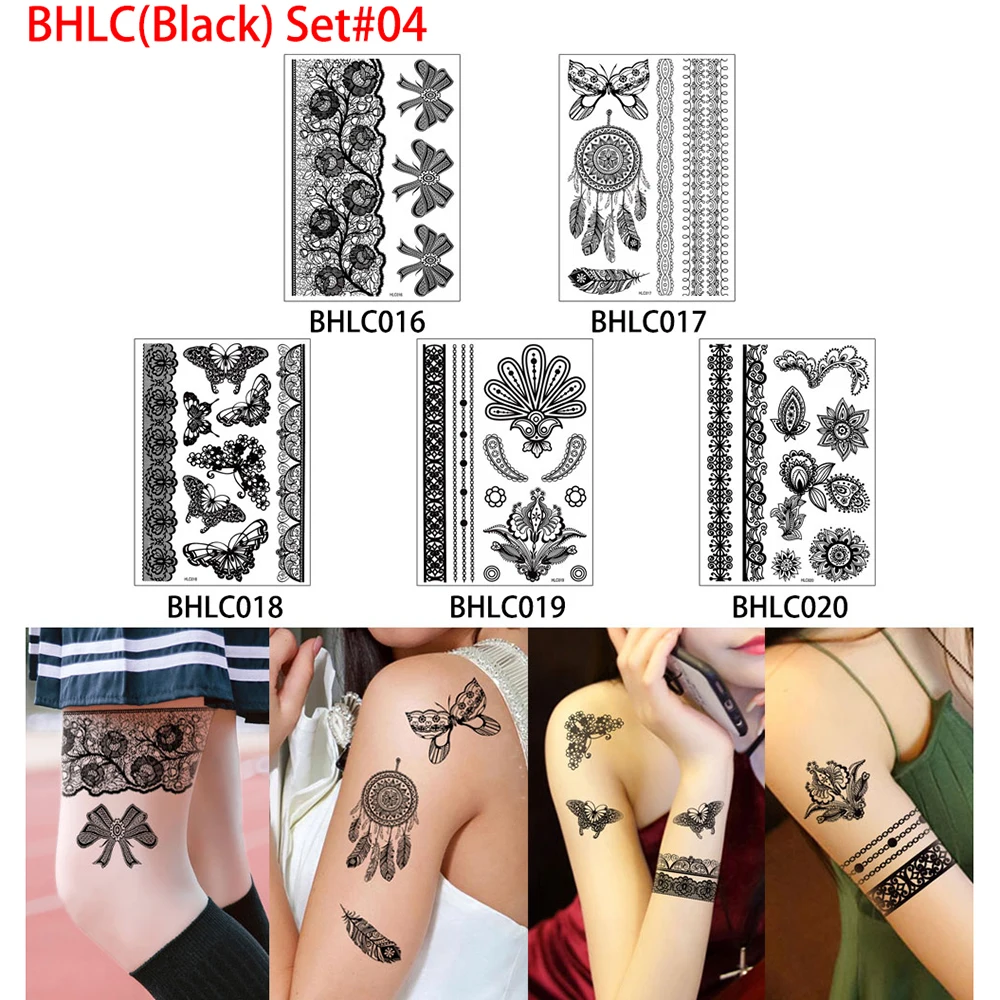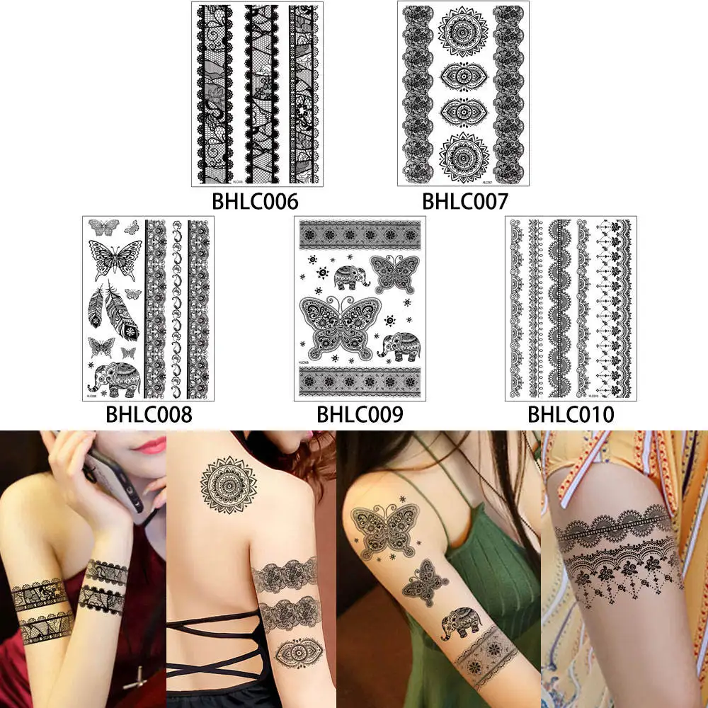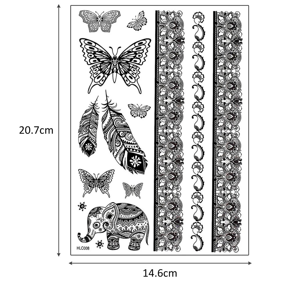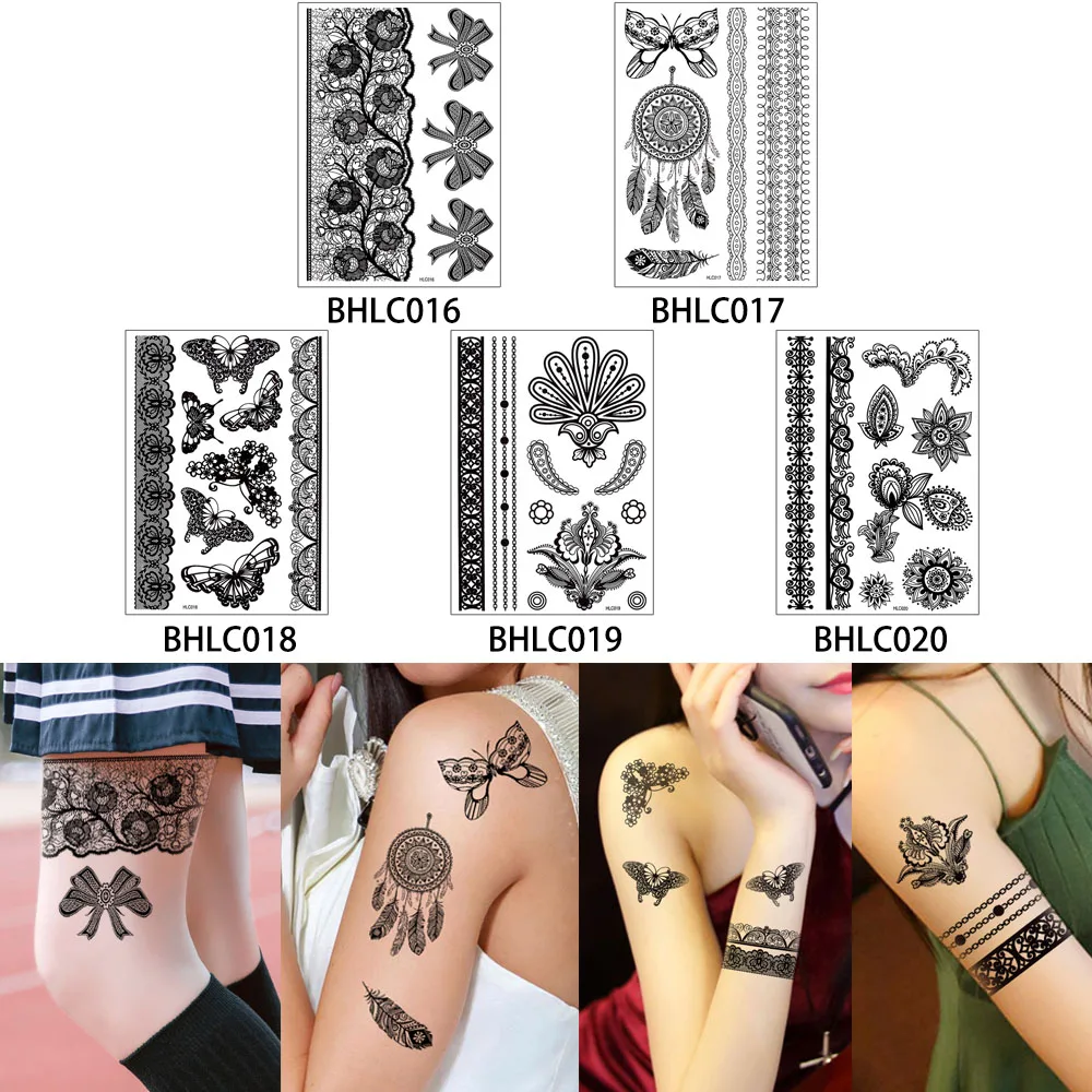 Temporary Tattoo Design:Black Flower Lace Pendant Tattoo Sticker Butterfly Style Wedding Party