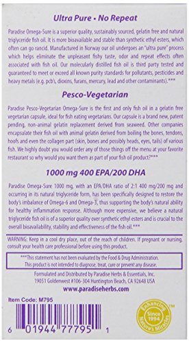 Studio : Paradise Herbs Publisher : Paradise Herbs Binding : Health and Beauty Product Description The first and only fish oil in a vegetarian capsule making it ideal for fish eating vegetarians (pesco vegetarians). Manufactured in norway our molecularly distilled pharmaceutical grade fish oils undergo an ultra pure process. while providing the maximum level of epa and dha in their natural triglyceride forms. Third party tested and guaranteed to meet or exceed all known purity standards for pollutants. pesticides and heavy metals (mercury. lead). our fish oils also have the strictest limits for oxidation parameters. In addition. our exclusive encapsulation technology (vfresh) locks in freshness. therefore further reducing oxidative?degradation. 0