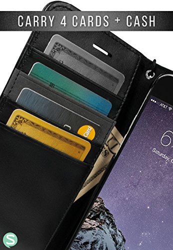 FOLIO WALLET CASE FOR IPHONE 6 PLUS/6S PLUS - Separate pockets for 4 cards (credit cards, IDs, etc.) plus full sized stash for your cash