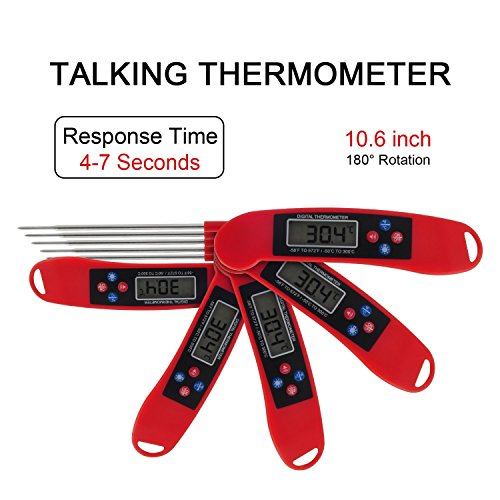 Talking Function - At the press of a button clearly speaks the temperature which is useful to visually impaired users or in the dark