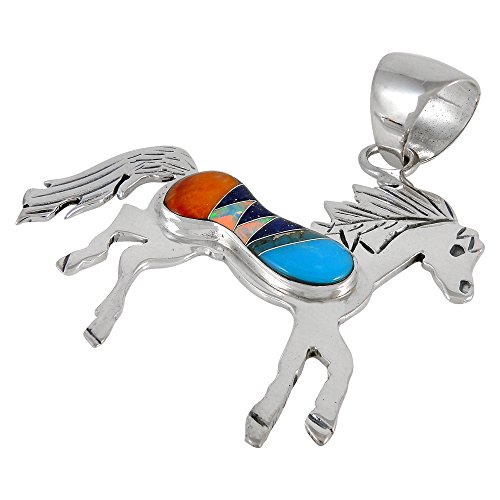 -. Feature : 925 Solid Sterling Silver (Horse Pendant & Chain) / Genuine Gemstones / Approx 1.5" wide x 1.5" tall (see ruler image) / Premium Quality | Imported / Turquoise Network: Fine jewelry at UNBELIEVABLE low prices! Accredited member of the Better Business Bureau (A+ Rated)