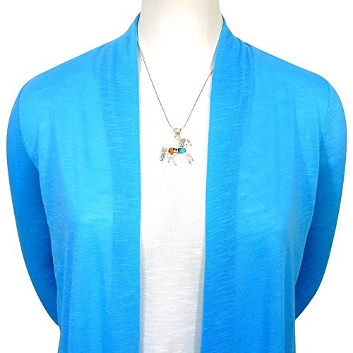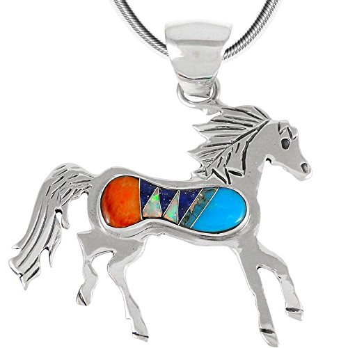 -. Title : Horse Necklace Sterling Silver Genuine Turquoise & Gemstones Pendant with 20" Chain