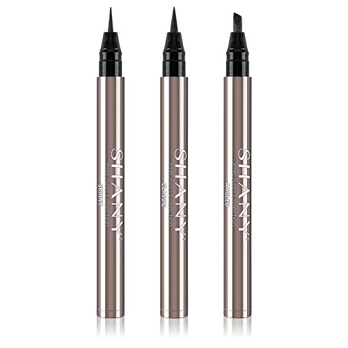 Open and elongate your eyes while capturing the catwalk's hottest craze - the cat eye. Even a liner newbie can be mistaken for a pro thanks to these shockingly easy-to-use felt-tips -- Classic, Angled and Skinny - that create runway-ready cat eyes in no time. Leave the drama to your look with these waterproof, smudge-proof, long-lasting, fast-drying, highly-pigmented, paraben-free, and talc-free liquid eyeliner. Aloe Vera helps liner glide on smoothly. The beautiful, ultra-chic case presents the eyeliners like fine jewelry, making them an ideal gift. Please SHAKE WELL before every use.Feature