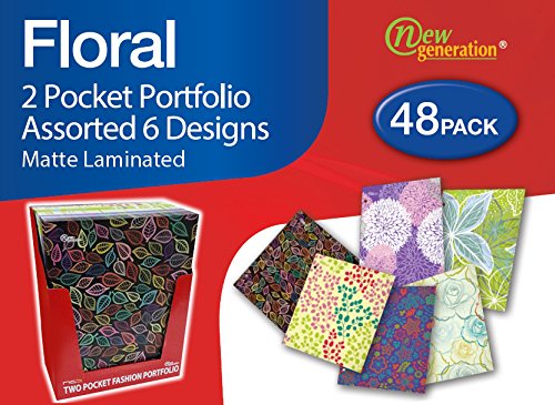 -. Title : New Generation - Floral - 2 Pocket Folder Heavy Duty 3 Hole Punch - 48 Folders per Pack in Display Box Assorted 6 Fashion Designs UV Glossy Laminated