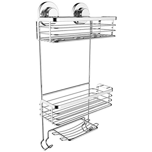 Vidan Home Solutions Rustproof Stainless Steel Dual Installation (Hanging or Mounted) Shower Caddy with 2 Suction Cups