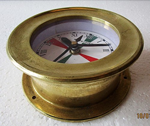 SHIP'S BRASS Clock – Marine RADIO ROOM Clock – ROMAN - Boat / Maritime / Nautical (5010B)