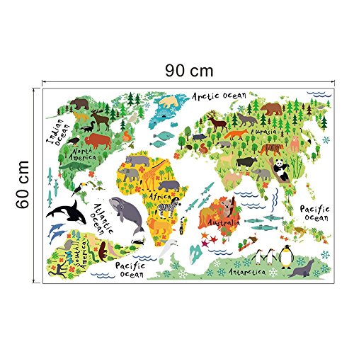 ufengke Cartoon World Map Cute Terrestrial and Aquatic Animals Wall Decals, Children's Room Nursery Removable Wall Stickers Murals