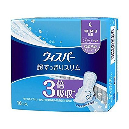 たくさん吸収しても、白いフチが残って見えるくらいきちんと吸収1.立体感のある構造で、ふわっと体を包み込んでくれる安心感のある付け心地2.スリムでありながらクッション性もあって、肌触りも快適3.幅広ウィングがショーツにしっかり固定して、ヨレ、ズレを防ぐ4.さらふわ感の続く表面シート採用