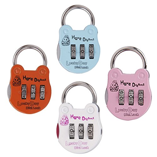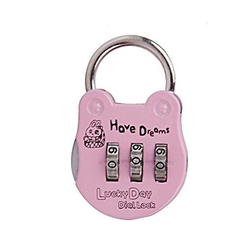-. Title : 3 Dial Combination Lock Cabinet Travel Lage Bag Padlock Pink