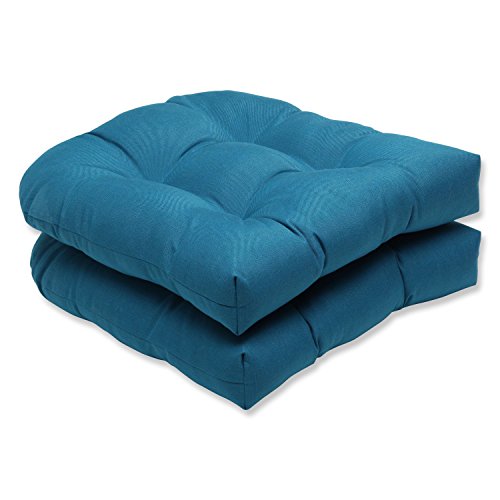 Pillow Perfect Wicker Seat Cushion with Sunbrella Spectrum Peacock Fabric, Set of 2