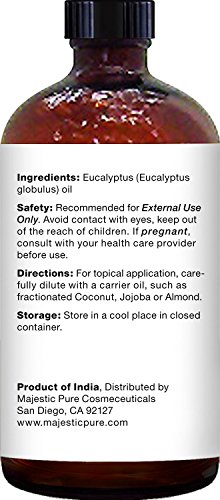 Majestic Pure Eucalyptus Essential Oil, 100% Pure and Natural with Therapeutic Grade, Premium Quality Eucalyptus Oil, 4 fl. Oz.