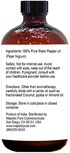 Majestic Pure Black Pepper Essential Oil, 100% Pure and Natural with Therapeutic Grade, Premium Quality Black Pepper Oil, 4 fl. oz.