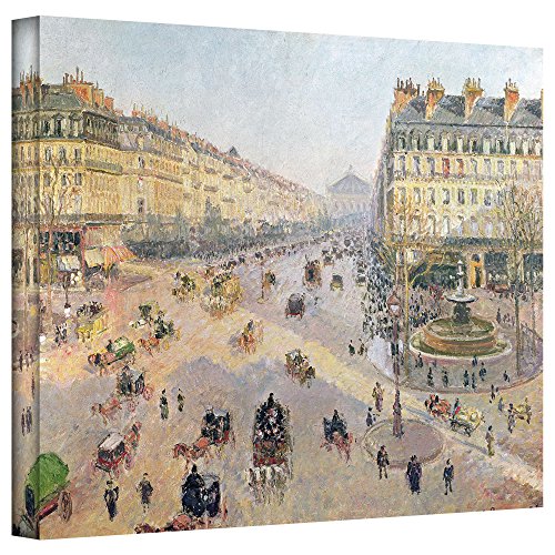 Camille Pissarro 'The Avenue de L'Opera, Paris, Sunlight, Winter Morning' unwrapped canvas is a high-quality canvas print depicting a bustling Paris streetscape in 1880. It is done in the artist's signature Impressionist style. Camille Pissarro was a French Impressionist and Neo-Impressionist painter born in the Virgin Islands. The subject matter was considered "vulgar" and "commonplace," with scenes of street people going about their everyday lives.Feature