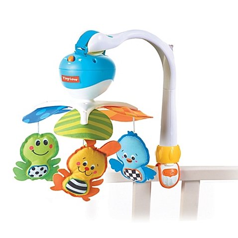 With multidimensional movement and tranquil music, the Tiny Love Classic Developmental Mobile entertains your baby and encourages improtant developmental skills. The mobile features a cylinder with colorful animals and black and white spirals. A music box offers continous sounds for a soothing exoerience that engages the imagination.Feature