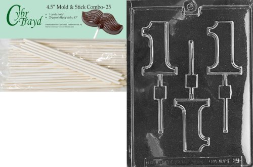 Cybrtrayd 45St25-L029 1 Lolly Letters and Numbers Chocolate Candy Mold with 25-Pack 4.5-Inch Lollipop Sticks