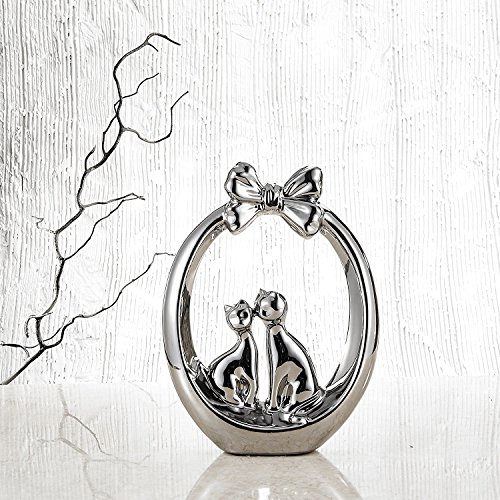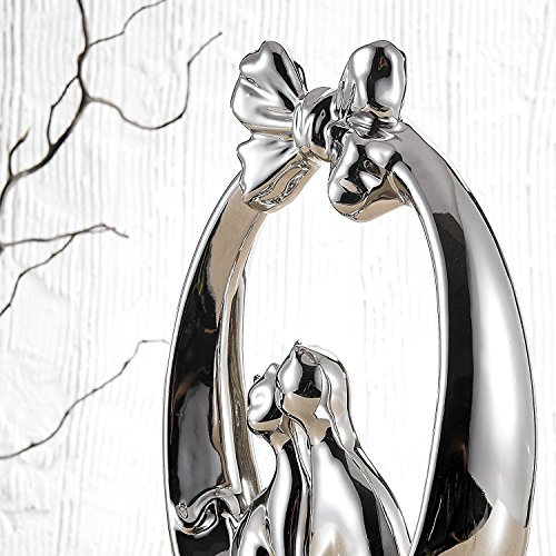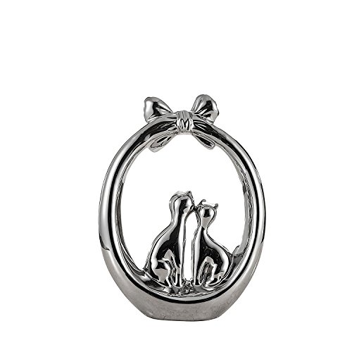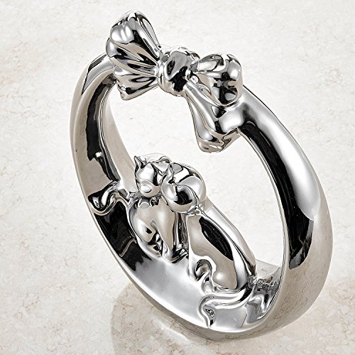 Pure.Lifestyle - 11.5" Flower Basket Cats - Electroplated Polished Chrome Silver Ceramic Decoration Animals Figurine Porcelain Sculptures Statues Crafts Home Warming Christmas Gift