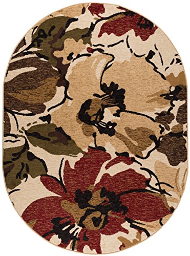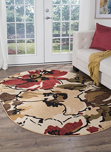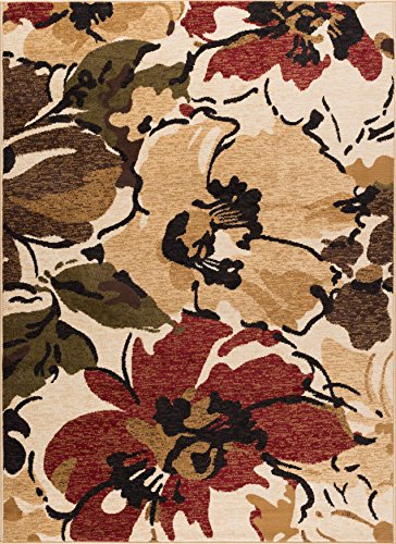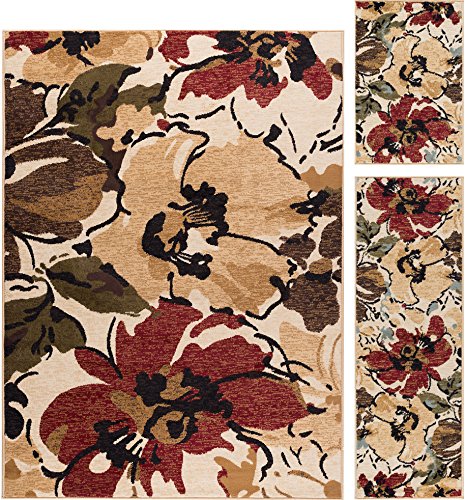 Add a natural element to your style with this area rug. This rug features an upbeat floral pattern in rich hues of red, brown, blue and green placed on an inviting beige field. It offers a cheery addition to your home and will fit in with any setting. The 100% polypropylene construction lends durability and versatility to this piece. This design is available in several individual sizes and as a three piece set so you can unify your look throughout your home. It is easy to care for, vacuum regularly to maintain its appearance. Spot clean as needed with mild detergent, do not dry clean or bleach.Feature