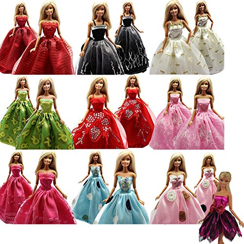 5 PCS HANDMADE FASHION WEDDING PARTY GOWN DRESSES & CLOTHES FOR BARBIE DOLL XMAS GIFT
