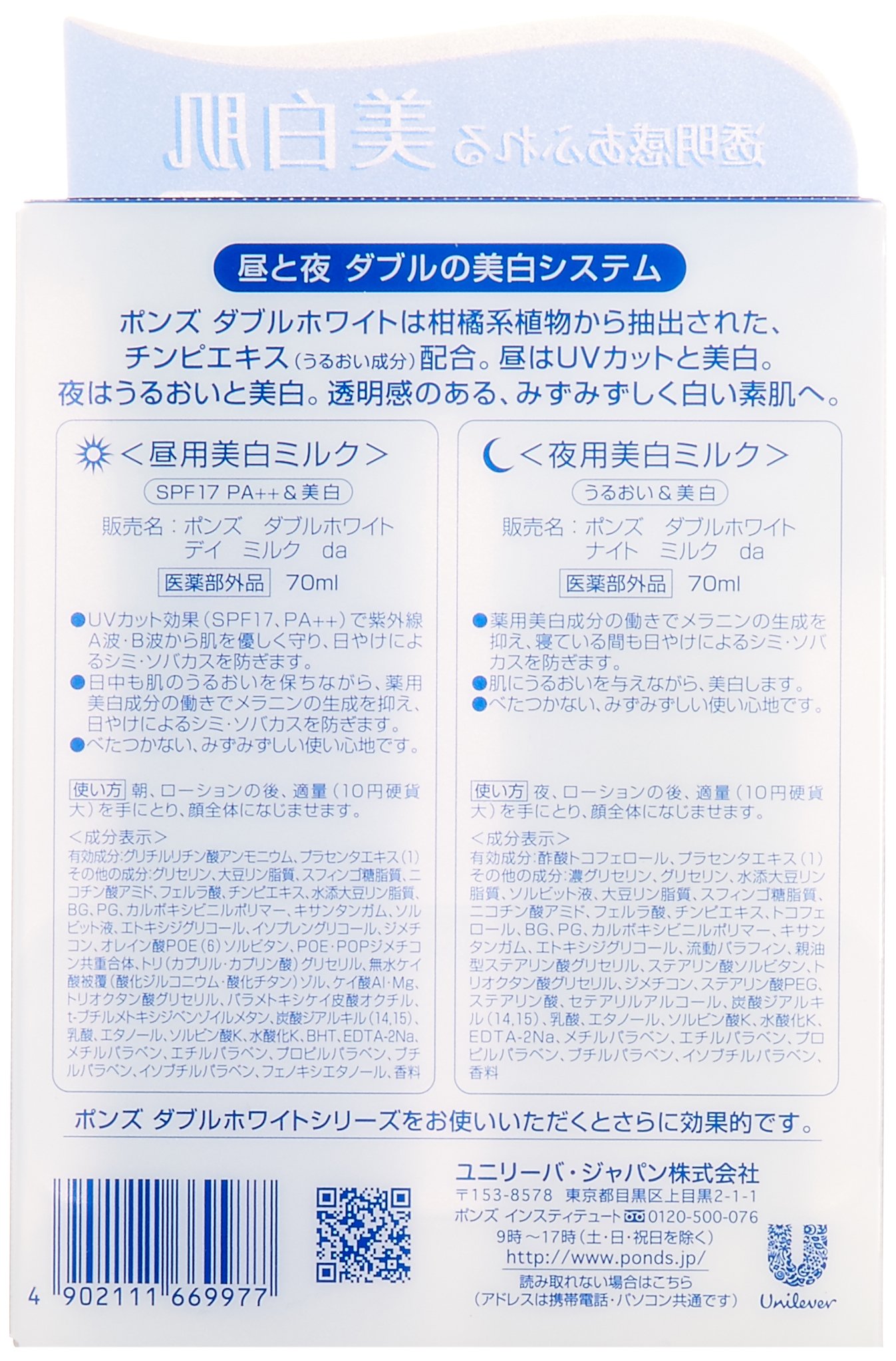 Ponds Double White medicated whitening moist milk set day-night 70ml + 70ml