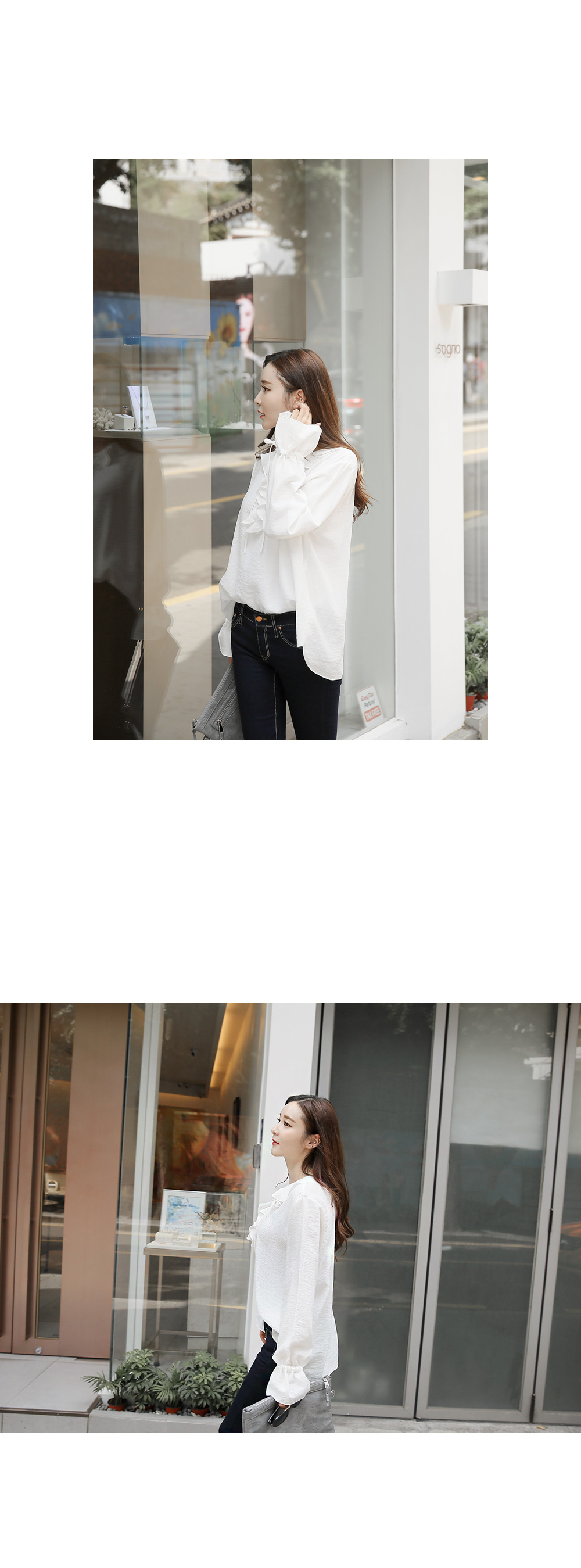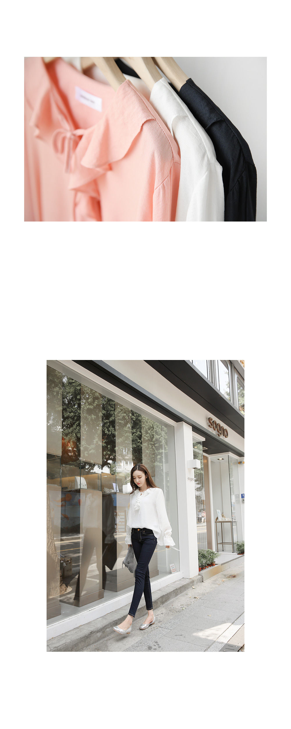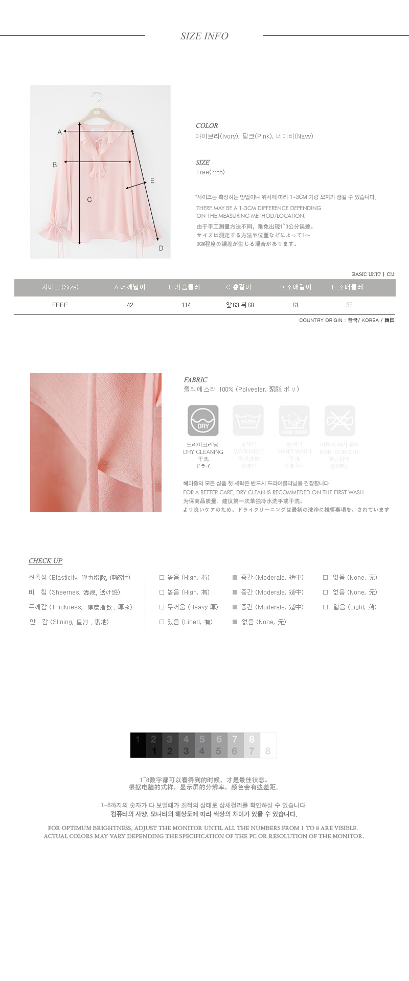 여성미 가득~ 러블리 블라우스에요^^데일리하면서 사랑스럽게 즐길 아이템!엠보감 느껴지는 소프트한 소재감으로기분좋은 착용감을 선사하는 아이템이구요,여유있는 실루엣으로 활동성까지 편안해요!네크라인 러플 디테일이 러블리한 무드를연출해 주면서 넥라인과 소매의 리본이 여성스러움을 보여주는 러블리 아이템이에요~과하지않은 디자인으로 부담없이손이가게될 데일리 블라우스로 추천해요^^*