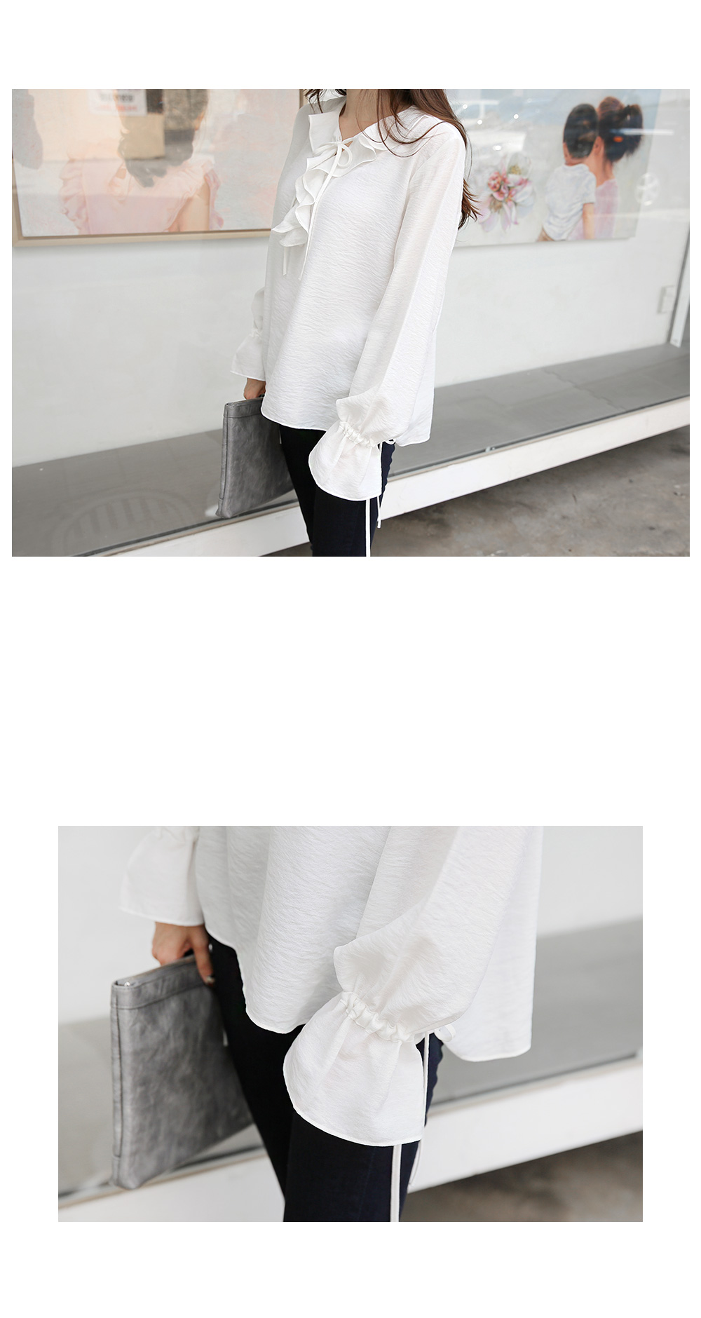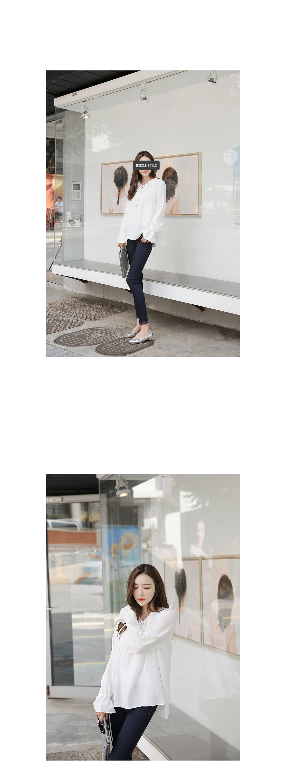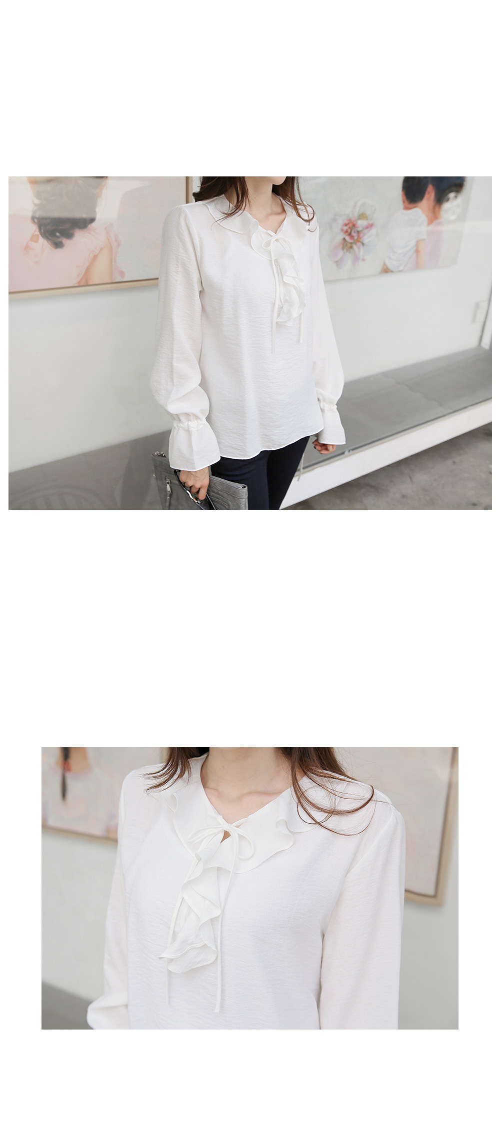 여성미 가득~ 러블리 블라우스에요^^데일리하면서 사랑스럽게 즐길 아이템!엠보감 느껴지는 소프트한 소재감으로기분좋은 착용감을 선사하는 아이템이구요,여유있는 실루엣으로 활동성까지 편안해요!네크라인 러플 디테일이 러블리한 무드를연출해 주면서 넥라인과 소매의 리본이 여성스러움을 보여주는 러블리 아이템이에요~과하지않은 디자인으로 부담없이손이가게될 데일리 블라우스로 추천해요^^*