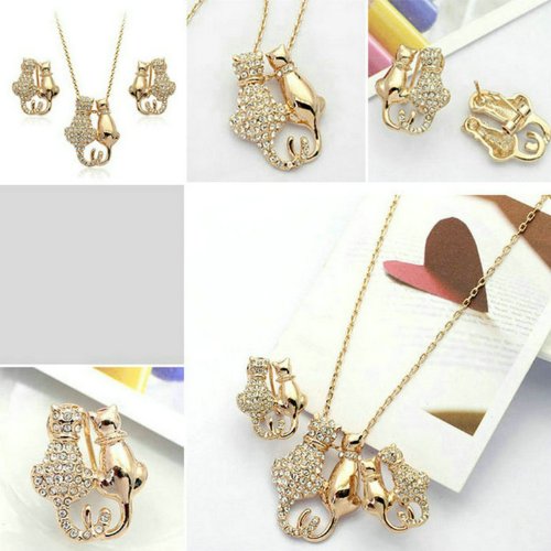 - Title : Yoursfs 18k Rose Gold Plated Austrian Crystal Cat Necklace and Earring Sets