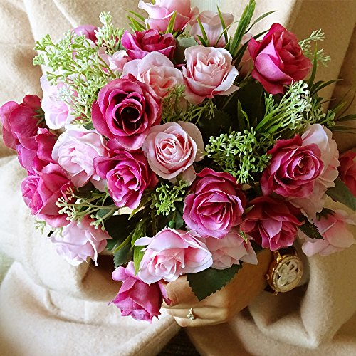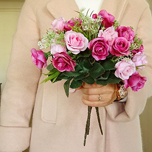 Artificial Flowers Rose Home Wedding Party Decoration Light Pink (1 Bouquet Size 11.4x7.08x7.08 Inches,Not Include Vase) 2 Bunches Flower Decorations