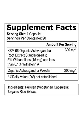 -. Title : Ashwagandha - KSM-66 Organic Aswagandha Root Extract - 90 Servings of Veggie Powder Capsules - Certified Organic, Non-GMO, Gluten, Dairy and Soy Free - Third Party Tested - Made in the USA