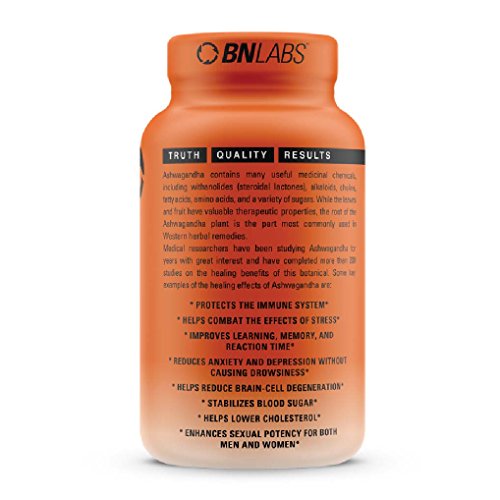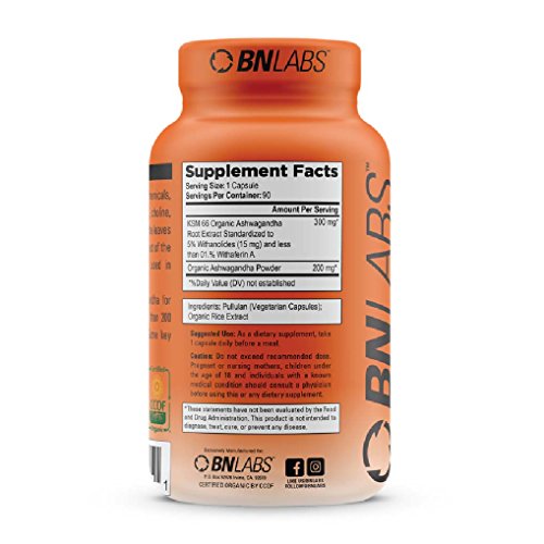 -. Feature : ONLY THE MOST RESEARCHED ASHWAGNADA ON THE PLANET; forget about cheaply made Ashwagandha formulas which include ingredients of questionable quality. BNLABS presents you with the best Ashwagandha, which is the result of a proP.R.Ietary blend of the most scientifically researched forms available - Organic KSM 66 Ashwagandha and Organic Ashwagandha Powder. Our blend contains 90 servings dosed at researched levels. / WHAT DOES ASHWAGANDA DO? If you are here you are probably aware of the benefits of this fantastic product known as the Indian Ginseng. It is natural and has been shown to reduce anxiety, stress, panic attacks, fatique, improve sexual health and function, while strengthen the immune system. Many people take it for increased mood and energy, while lowering levels of depression. On top of this it is a great natural sleep aid at higher dosages! / NO SIDE EFFECTS; at BN LABS, we understand that most of the side effects of Ashwagandha come from an intolerance to the bioperine (black pepper) in other formulas, this is why we chose not to include this and give you the option to add it yourself depending on tolerance. Bioperine will increase absorption, however, it will cause nasty side effects for many. We provide a solution that is best for everyone! / THIRD PARTY TESTED; our formula is third party tested for potency and accuracy in every bottle. Manufactured in an NSF GMP certified facility that is also an FDA inspected facility. Our product is Certified CCOF Organic, Non-GMO, Gluten Free, Dairy Free, Soy Free and available in veggie capsules. / 100% SATISFACTION OR YOUR MONEY BACK: Keeping you satisfied and providing you with the highest quality products is our number one goal. This is why we offer you a full refund in case our Ashwagandha formula does not live up to your expectations.
