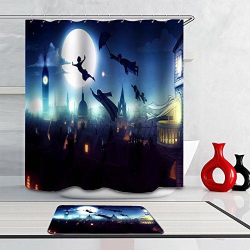 -. Title : J-SO Halloween Theme Ghost Witch Moon Umbrella Polyester Fabric Waterproof Mildew Resistant Antibacterial Bathroom Shower Curtain (60"W x 72"H) with Mat
