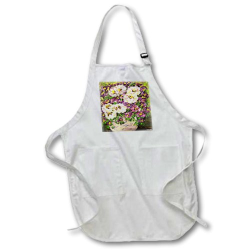 3dRose apr_66337_1 Flowers in Purple & White Full Length Apron, 22 by 30", White, with Pockets