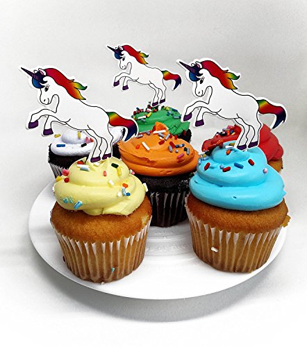 Rainbow Unicorn Cupcake Toppers (24 count) for Birthday Party or Event