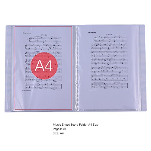 -. Feature : For holding sheet music, files etc. / Durable and stylish outer shell. / Transparent and water-resistant inner pocket, concave-convex surface. / Suitable A4 sized and smaller than A4, 40 inner pages. / Ideal for kinds of instrument players, musicians.