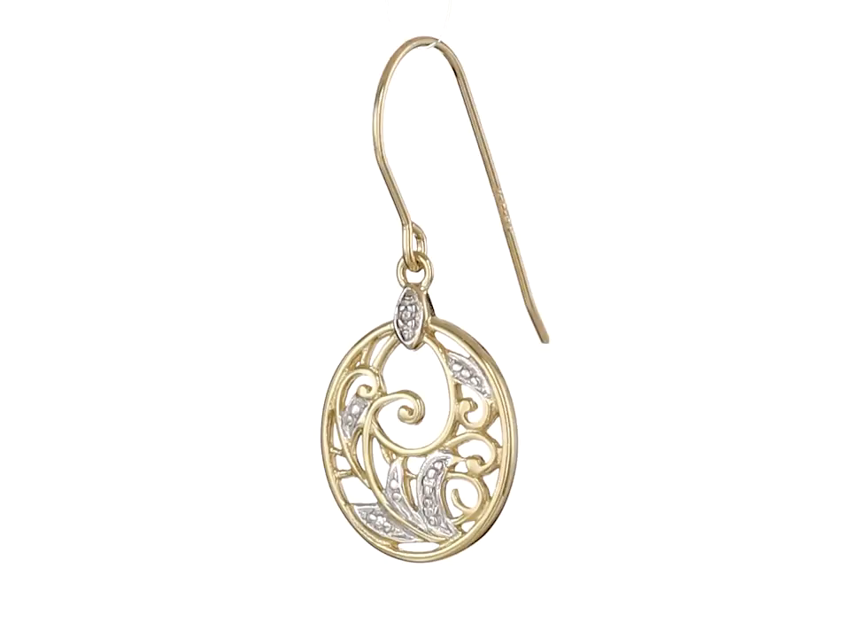 18k Yellow Gold and Rhodium Plated Sterling Silver Diamond-Accent Floral Dangle Earrings