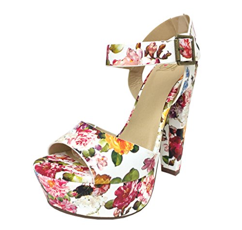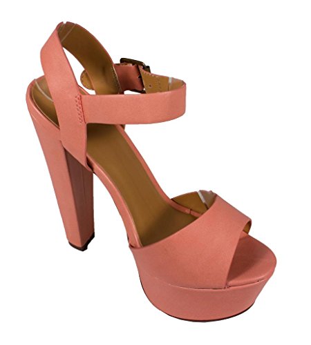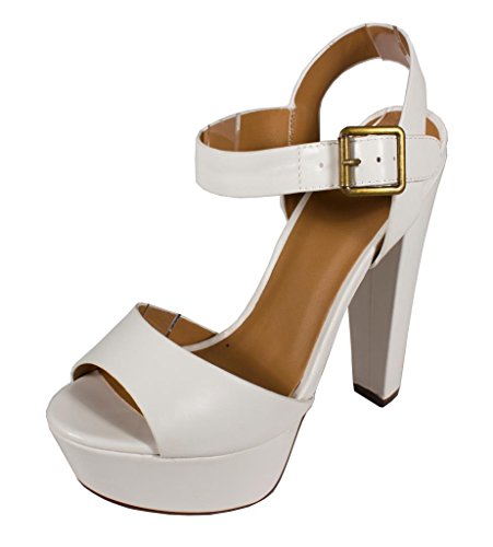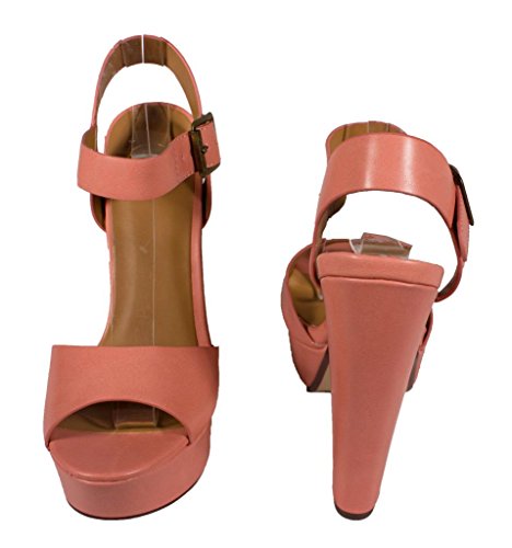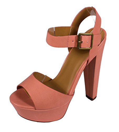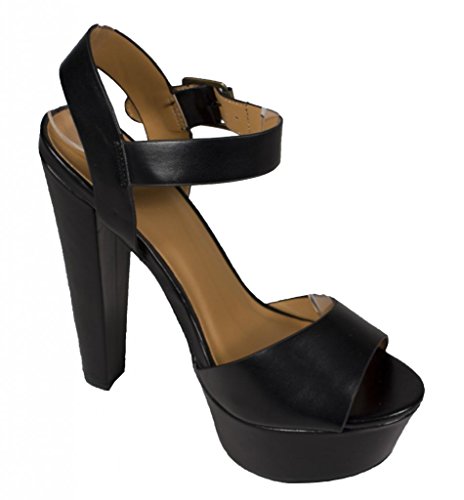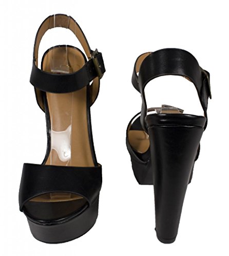 Product DescriptionLustacious Women's Peep Toe Platform Ankle Wide Buckle Strap High Heel0